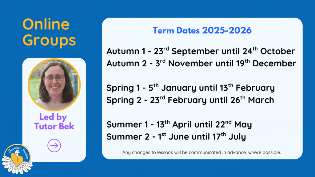 A range of small group tuition and one-off lessons are available during the academic year. Some lessons are available in the evenings, which are ideal if your child is at school during the day. Alternatively, there are daytime lessons available for children that are home educated.